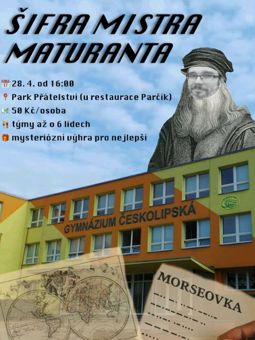 Poslední zvonění sice končí už v 11:40, ale vy se můžete v 16:00 zastavit v Parku Přátelství na naší šifrovací soutěži se zaštiťujícím tématem Českolipská. Na našem instagramovém profilu @ceskolipska_sifra naleznete přihlašovací formulář. Pro nejlepší týmy máme připravené ceny!