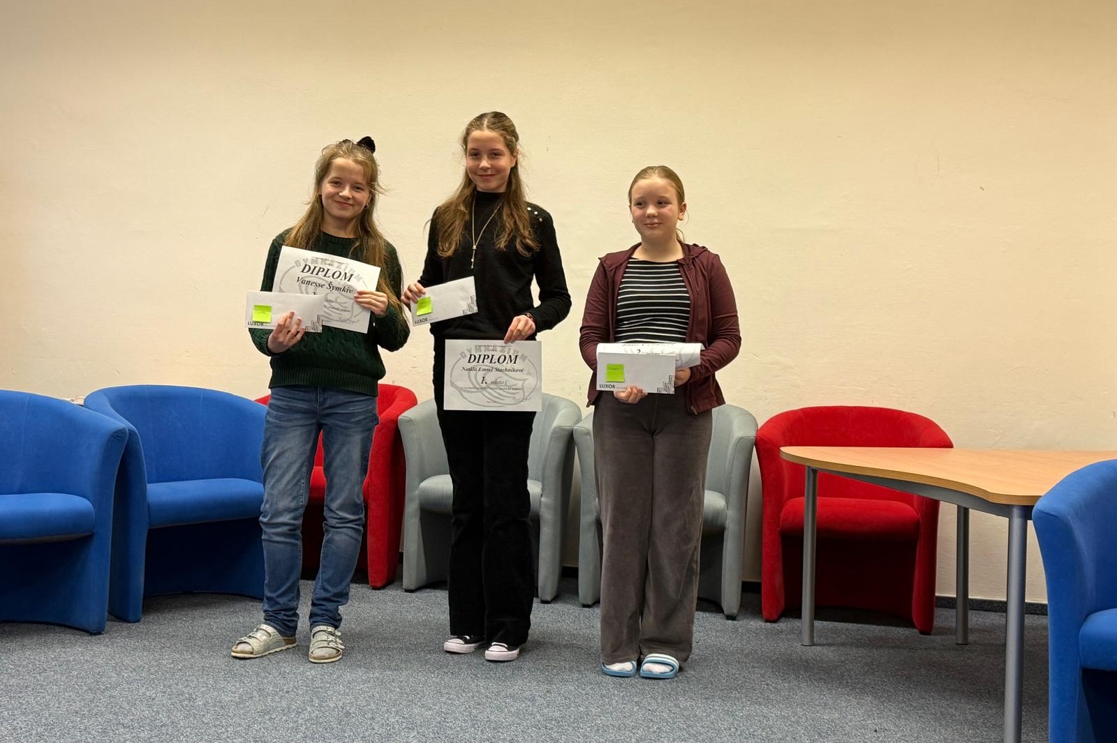 V recitační soutěži Pražský kalich se na třetím místě umístil Petr Voplatek ze třídy 6.B, druhé místo vybojovala Marie Dědicová ze 6.B a první místo získala Johana Kopcová ze 3.G s textem Haraburďárna.