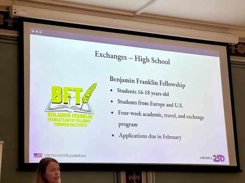 Dne 9. prosince navštívili studenti 3.G a 3.H Americké centrum na Malé Straně. Dozvěděli se, co obnáší práce diplomata i jaké jsou možnosti získání stipendia pro studium na amerických středních i vysokých školách nebo výměnného programu sponzorovaného Ministerstvem zahraničí USA.